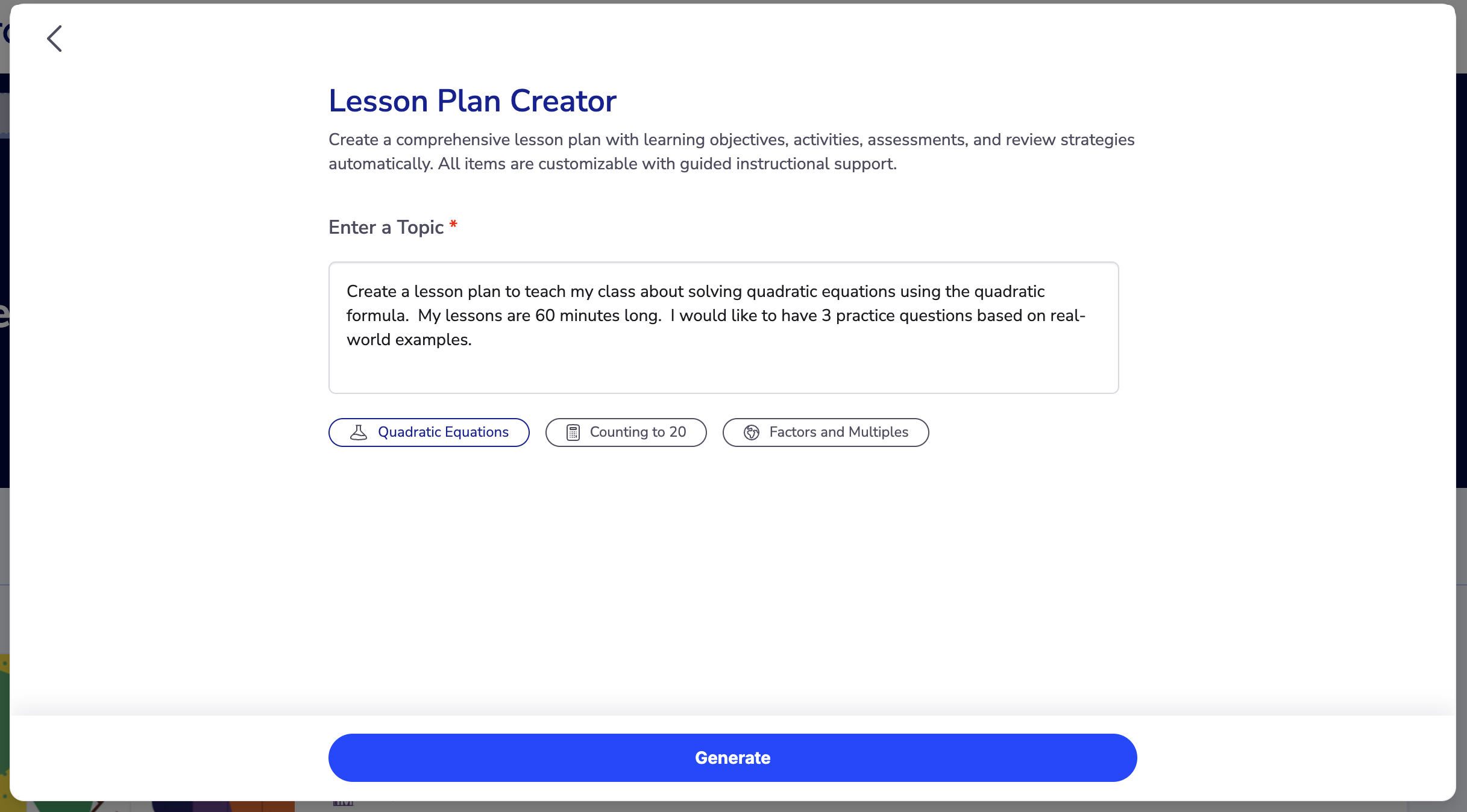 Teachers can go from an idea to an instructional plan in under 5 minutes. This removes the hardest part of preparation and avoids starting from scratch each time.