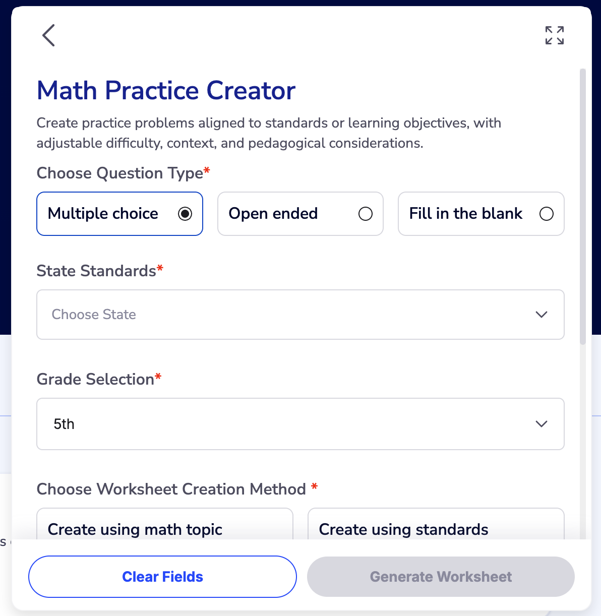 Teachers get exactly the problems they need, tailored to their lesson and class level—without relying on outdated PDFs or outside tools.